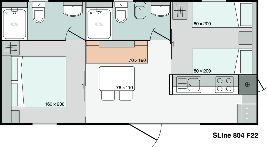 The new SLine mobile homes set new standards among this price range. New exterior and interior and so much more than just accommodation, with brand-new floorplans and new features, which will please even the most discerning guests. Excellent quality / price ratio.